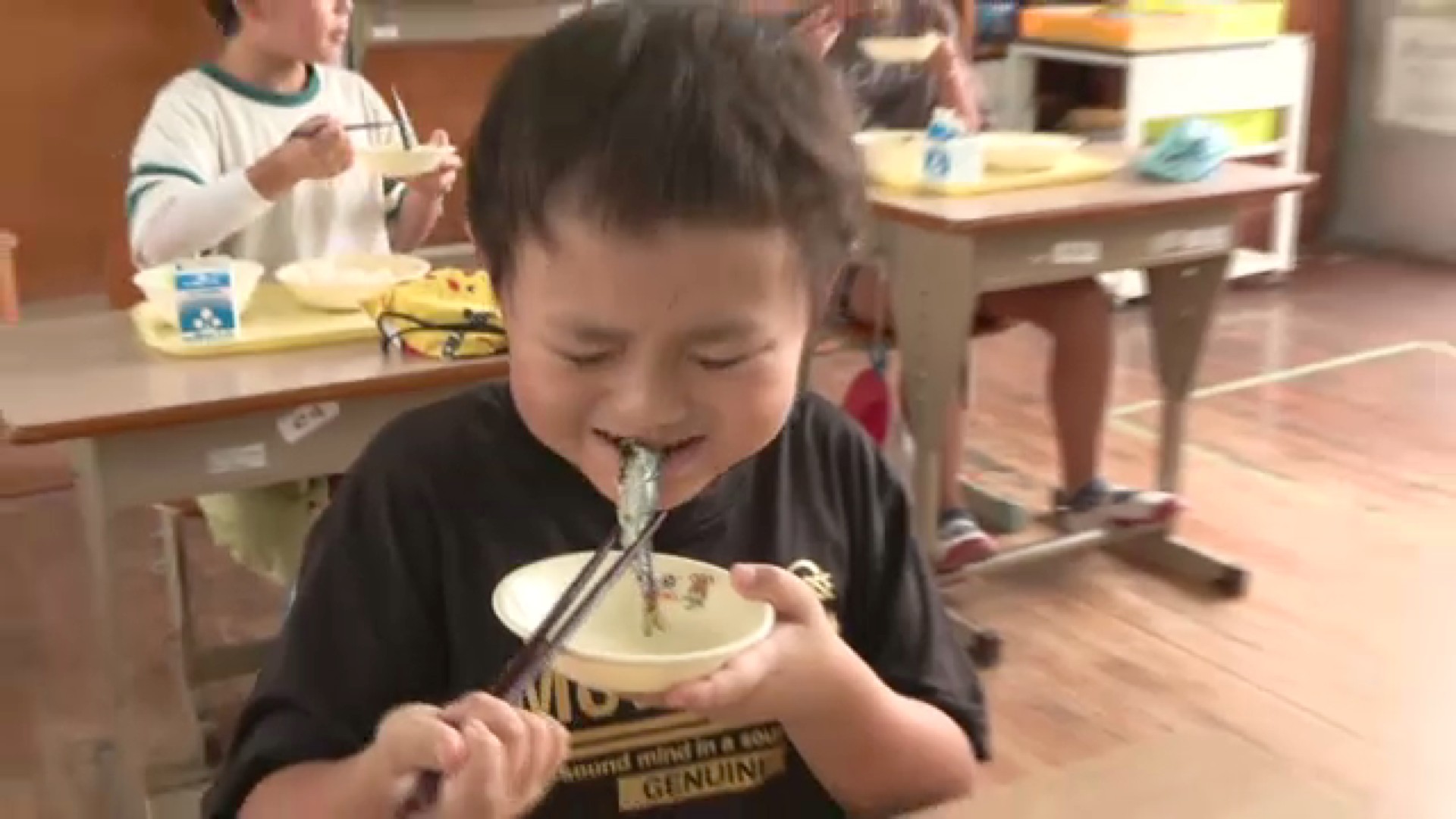 イワシの産地として知られる鹿児島・阿久根市では、地元の水産会社から、市内の小・中学校の給食にイワシの丸干しが提供された。
