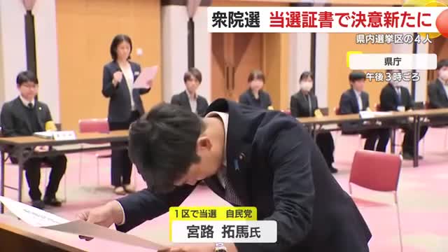衆院選 当選証書で決意新たに 鹿児島県内選挙区の4人