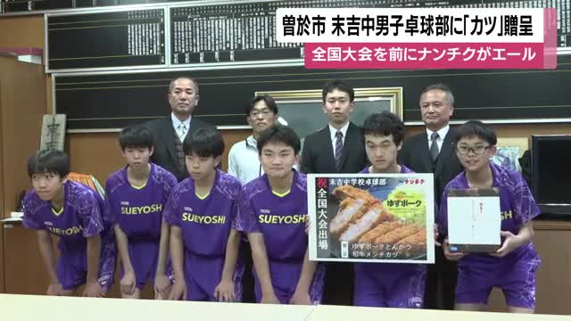「勝つ」を贈る 部員6人の末吉中男子卓球部へ、食肉メーカーが“カツ”50人前を提供