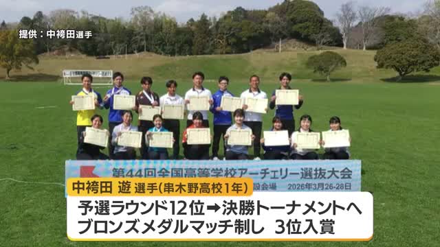 串木野高校・中袴田選手が3位入賞 全国高校アーチェリー選抜大会