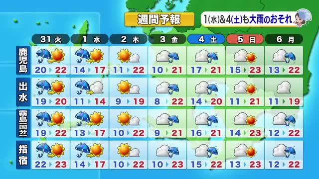 かごしま天気速報(3/30)鹿児島で非常に激しい雨 明け方まで大雨・土砂災害に警戒