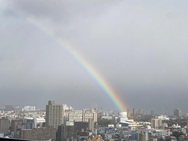 錦江湾には、きれいな虹がかかっていました