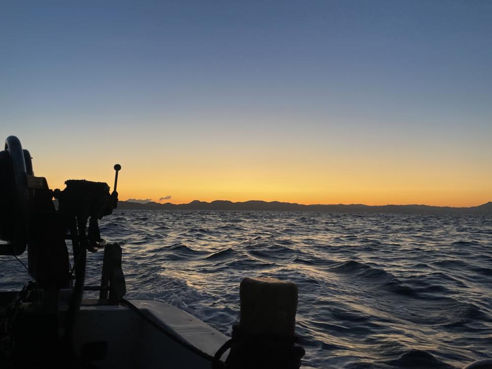 船が沖に向かうにつれて、徐々に日が昇り・・・