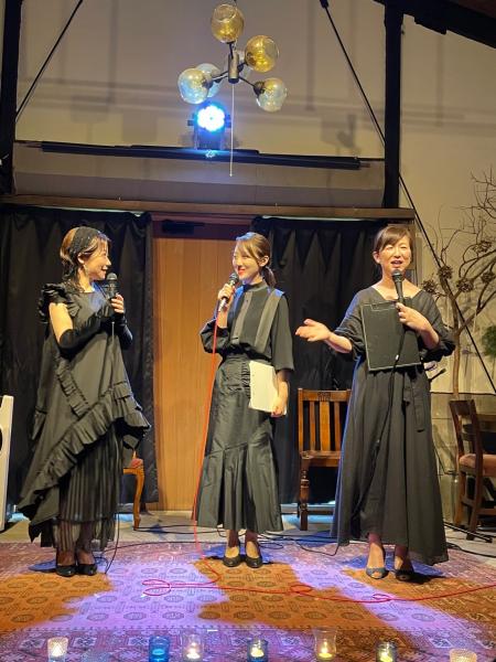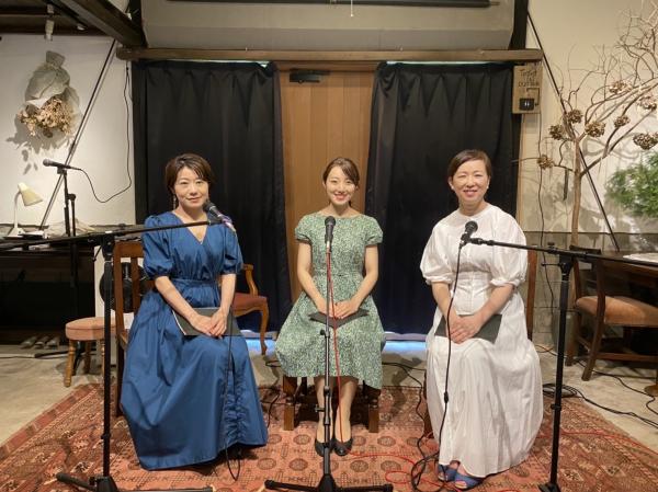 朗読家の浜本麗歌さんと、カフェオーナーでラジオパーソナリティーの蔵屋留美子さんと