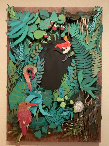横手さんは鹿児島で貼り絵作品を数多く発表しています。