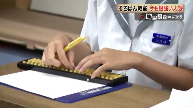 記憶力向上に効果的なのが「フラッシュ暗算」だ。一定時間に表示される複数の数字を足し合わせ、答えを出す。伊集院小学校6年の菊永琉樹さんは「3桁の文字を頭の中で(そろばんの玉を)弾いてそれをどんどん足していく」と説明する。