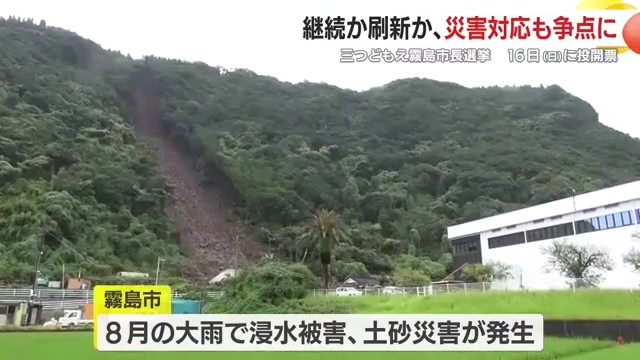 霧島市では8月に大雨による浸水被害や土砂災害が発生したことから、今後の防災行政のあり方も争点の一つとなっている。