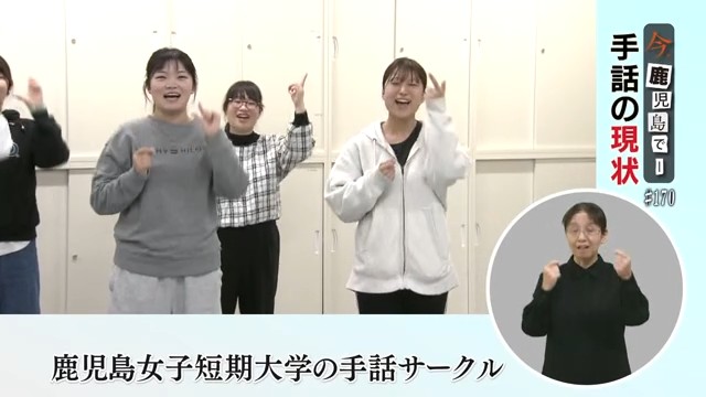 また、鹿児島女子短期大学(鹿児島市)の手話サークルでは、保育士や教師を目指す学生たちが手話の歌を練習している。「歌いながらの単語を覚えている段階なので、少しでもコミュニケーションができるように技術を身につけたい」と学生は意欲を見せる。