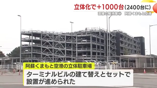 駐車場の混雑解消に向け、国や県、駐車場運営会社などで構成される検討会では、立体駐車場の設置が重要なテーマとなっている。参考となるのが、4年前に立体駐車場を完成させた熊本県の阿蘇くまもと空港の事例だ。