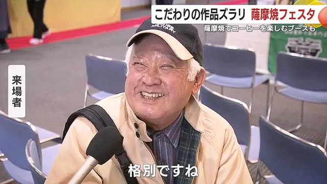 会場では、湯飲みやお茶碗など多彩な薩摩焼の作品が並び、来場者は各窯元のブースで説明を受けながら、お気に入りの商品を探していた。