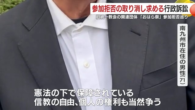 鹿児島市で開催された「おはら祭」への参加を認められなかった旧統一教会関連団体の代表者が、参加拒否の取り消しを求める行政訴訟を起こした。この訴訟の第一回口頭弁論が12月2日に開かれた。
