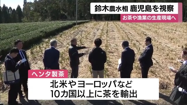 鈴木農水相、鹿児島視察 「輸出で稼ぐ」現場に注目 茶の有機栽培からカンパチ養殖まで