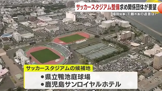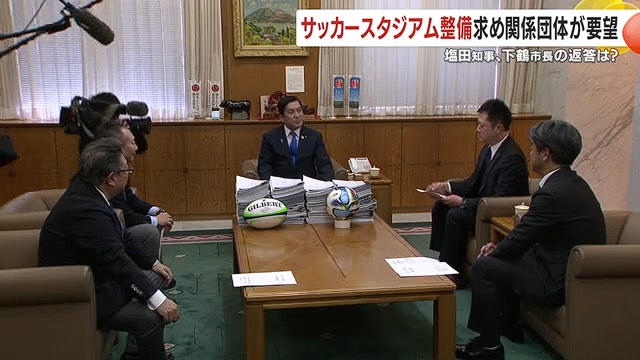 鹿児島市が検討しているサッカースタジアムの早期整備を求めて1月19日、関係団体が塩田知事と下鶴市長に要望書を提出した。