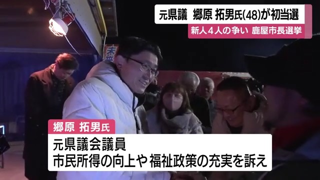 鹿児島県鹿屋市長選挙が1月25日に投開票され、無所属新人で元県議会議員の郷原拓男氏(48)が初当選を果たした。投票率は52.06%で、過去最低だった前回を16.66ポイント上回った。