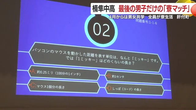 鹿児島県肝付町にある全寮制の中高一貫教育男子校「楠隼(なんしゅん)」で、年に一度の恒例行事「寮マッチ」が開かれた。2026年度から女子生徒も入学するため男子だけの大会は今回が最後。頭脳と身体能力を競う伝統の戦いをのぞいてみた。