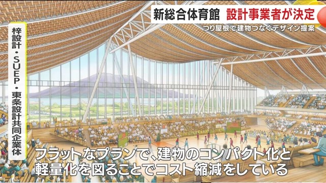選ばれた梓設計・SUEP・東条設計共同企業体の担当者は「一番景観が大事だと考えていて、桜島と調和するおおらかな屋根を造りたい」と意気込みを語った。
