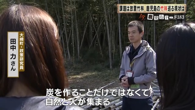 取り組みの中心にいるのは、大崎町の政策研究員・田中力さん。自身も耳に障害があり、竹林対策を障がい者の働く場につなげようと考えてきた。その答えが「竹炭づくり」だ。