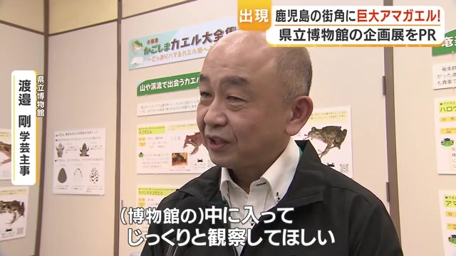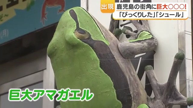 鹿児島市の県立博物館に、通行人の視線を釘付けにする大きな訪問者が現れた。看板にどっしりと張り付いた体長1メートルの「アマガエル」。実はこれ、博物館職員が約3カ月かけて手作りした渾身のオブジェだ。「すごいびっくりしましたし、ちょっとかわいい」「シュールですね」と、思わず足を止めた通行人からそんな声が上がった。