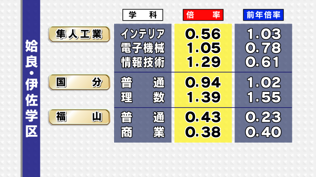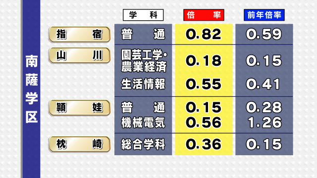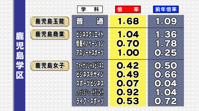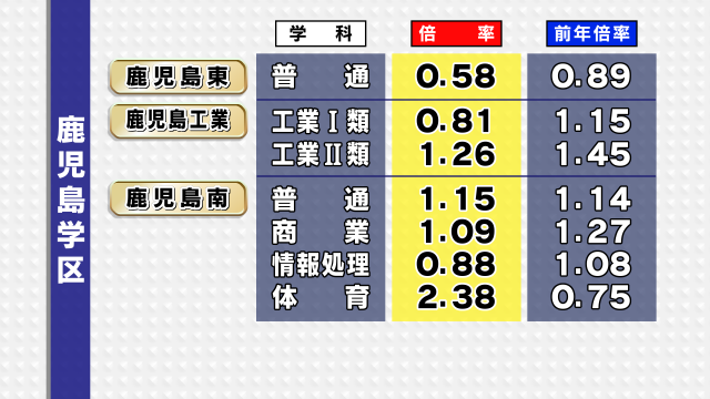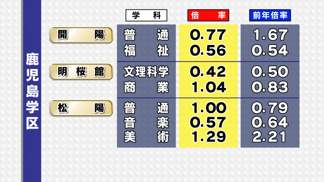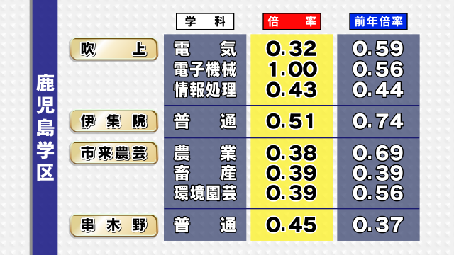 2026年度 鹿児島県公立高校 出願倍率を掲載致します。(2月13日 県発表)
