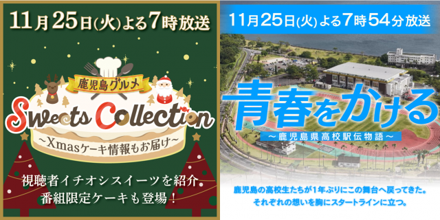 スイーツコレクション~Xmasケーキ情報もお届け~②19:54~21:00「青春をかけるー鹿児島県高校駅伝物語ー」