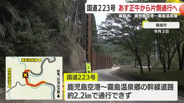 霧島市の国道223号 17日から片側交互通行が可能に 大雨で8月から全面通行止め