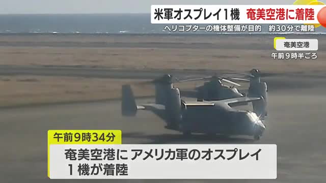 米軍オスプレイ1機 奄美空港に着陸 ヘリコプターの機体整備が目的 約30分で離陸
