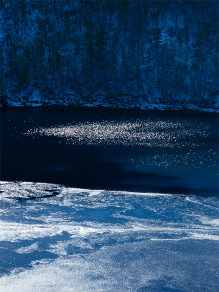 湖面に氷が張る様子は逆光で撮影すると映える気がします。