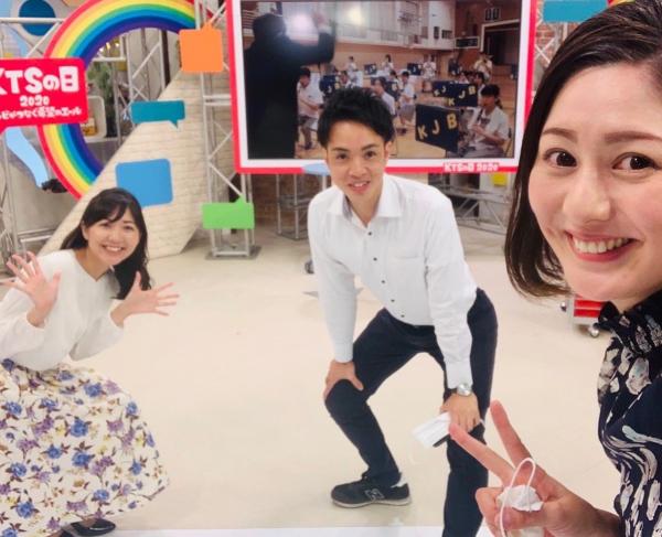 放送終了後に前原アナウンサーと井上アナウンサーと記念撮影。