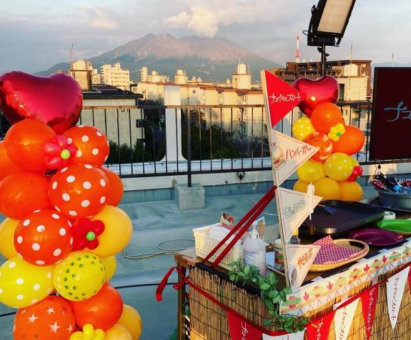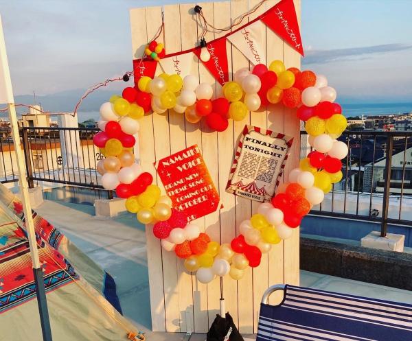 この日は、K T Sの屋上でフェス風のセットを組んだので、バルーンも、ポップに、そして華やかな色合いにしてみました。