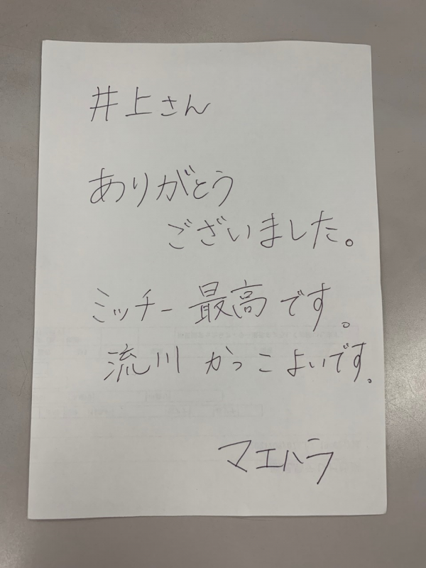 こちらは、前原くんがくれた感想。