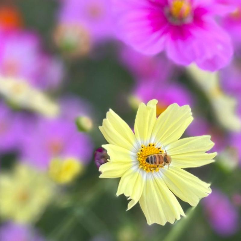 ミツバチも花の蜜に夢中でした…。