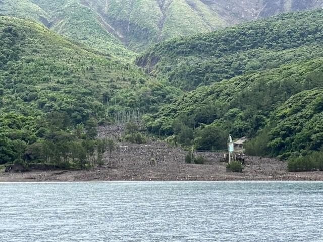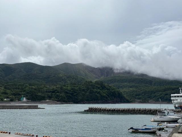 フェリーから口永良部島を見ると、過去の噴火の跡がはっきりと地層に残っているのが確認できました。