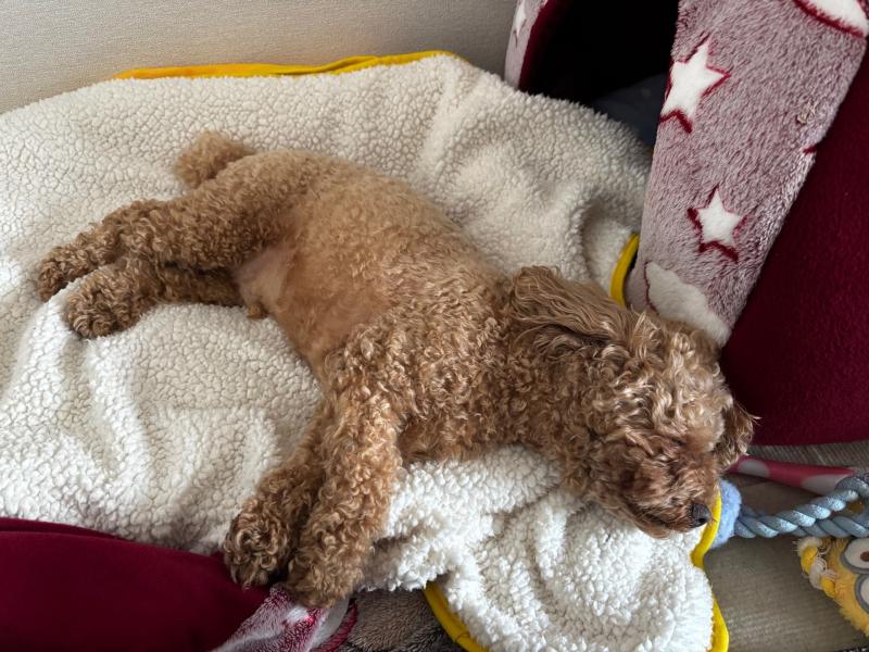 追伸…ペット座談会から家に帰ってきたしゃもじ。友達に会えて楽しかったのか、爆睡でした。