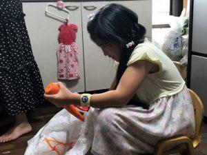 写真は、人参の皮むきをしているところです。