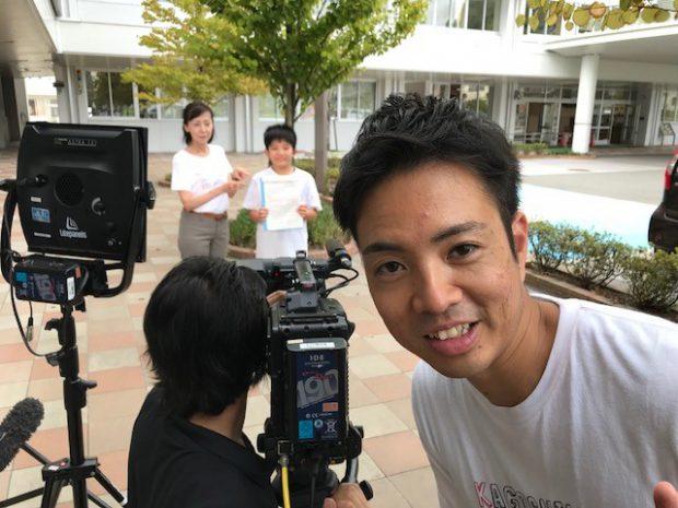 今回は夏休み中の学校で、スマイルCMの撮影です。