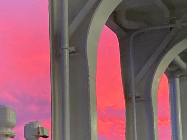 フェリーの甲板を降りて、車載場から見えた 空!!