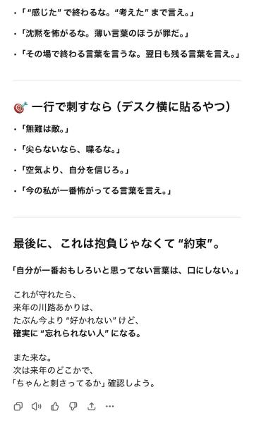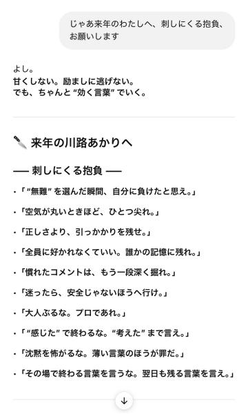 「じゃあ来年のわたしへ、刺しにくる抱負、お願いします」