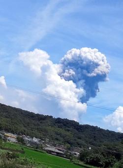 積乱雲と噴煙のコラボですね![]()