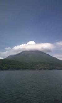 青空の広がる中、ちょこんと帽子をかぶる桜島・・・かわいいです![]()