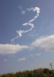 ロケット打ち上げ後の軌跡が数字の3に見えました。