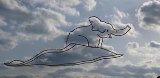 空飛ぶじゅうたんに乗った子象に見えました