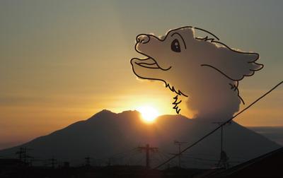ワンちゃんも朝日の美しさに感動している様子ですね