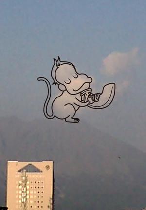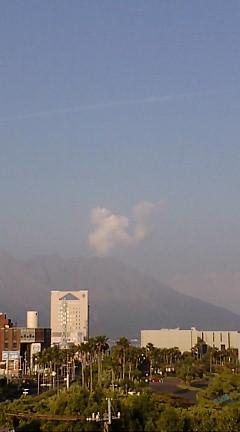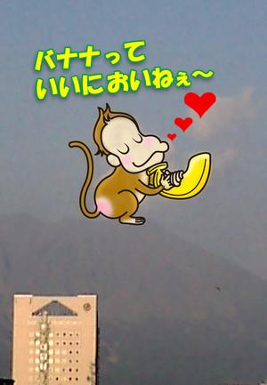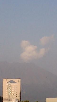 お猿さんが横向きに桜島に腰掛けてるように見えました。