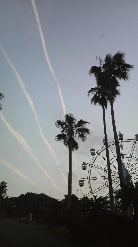 4本の飛行機雲 2009.06.03 シェアする 雲の形というか飛行機雲が四つもあるので どうやって飛んだのかなぁ(笑)と思い投稿してみました。 観覧車と飛行機雲でなんだかいい感じ。 ペンネーム:ひよこ 飛行機雲と風景のバランスがキレイですね 4本の雲は鹿屋で行われた、 「エアーメモリアルinかのや」の航空ショーによるものかもしれません。 投稿をありがとうございました 新井