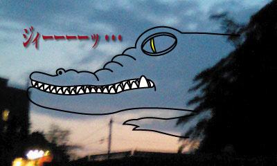 仕事に行く途中で獲物を狙っているワニみたいな雲を見つけました!