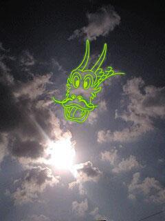 真ん中の太陽の上の雲が「辰」の顔に見えます