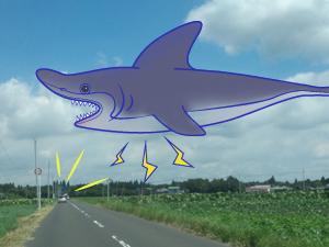 今回は、夏の青空に大きなサメさんが現れたようですね!