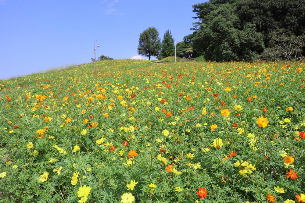 四季折々の花が楽しめる錦江湾公園を訪ねると、鮮やかなコスモス畑が見頃でした。