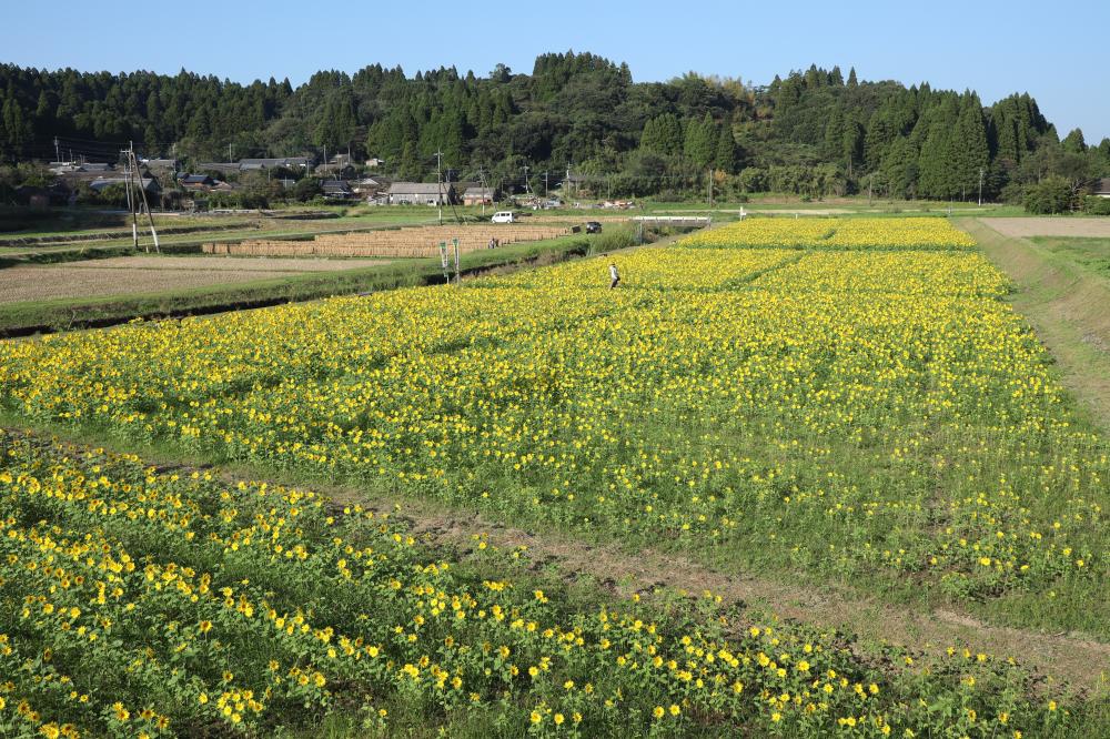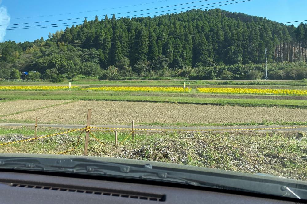 車をとめ、まず目に飛び込んできたのは一面真っ黄色のじゅうたん。