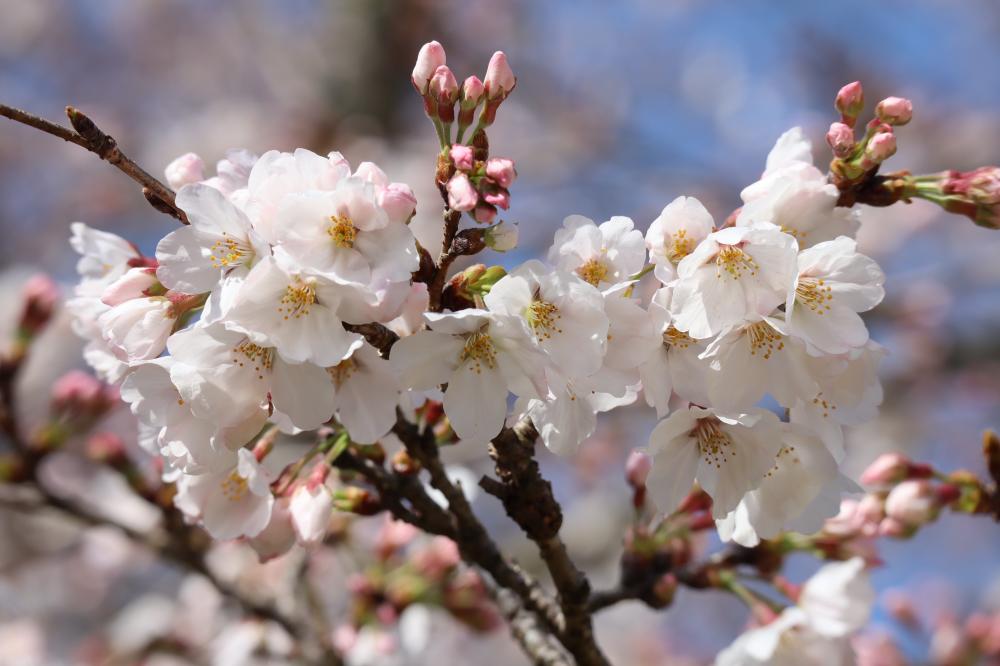 ソメイヨシノと違って、花と一緒に葉が出るので爽やかな印象です。